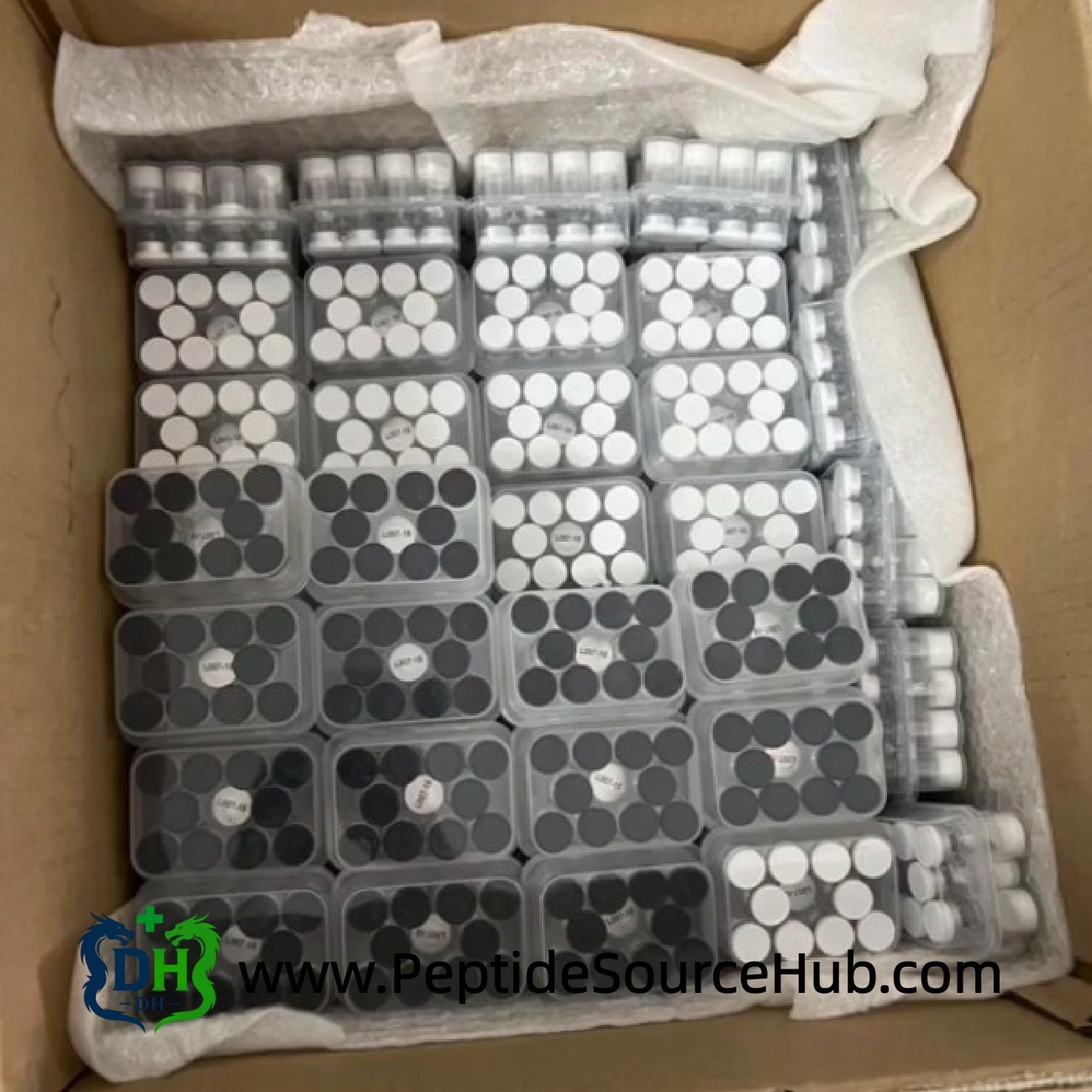 - Vials packed in protective trays with export-ready outer cartons