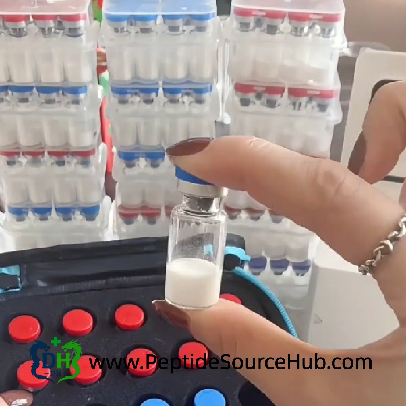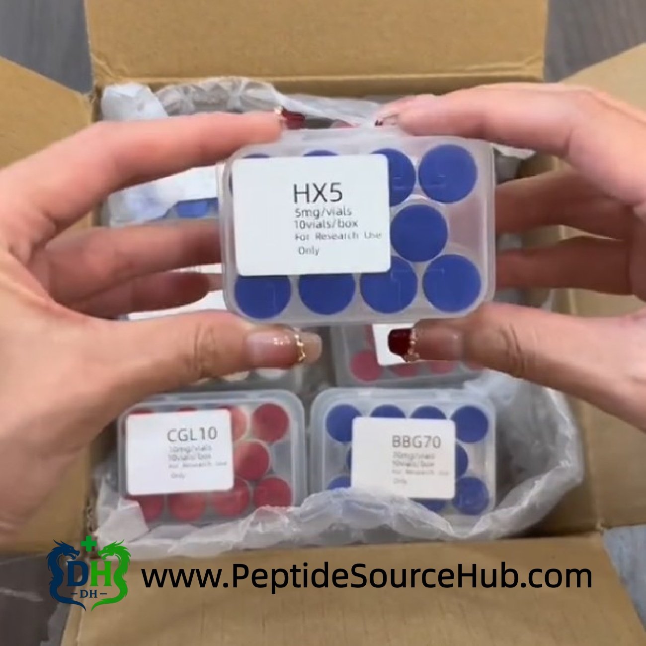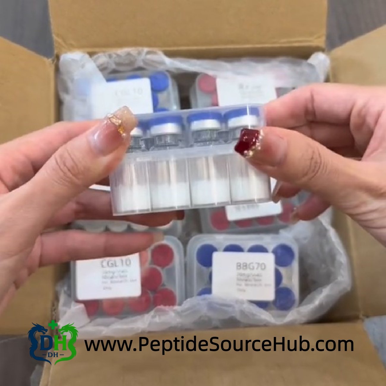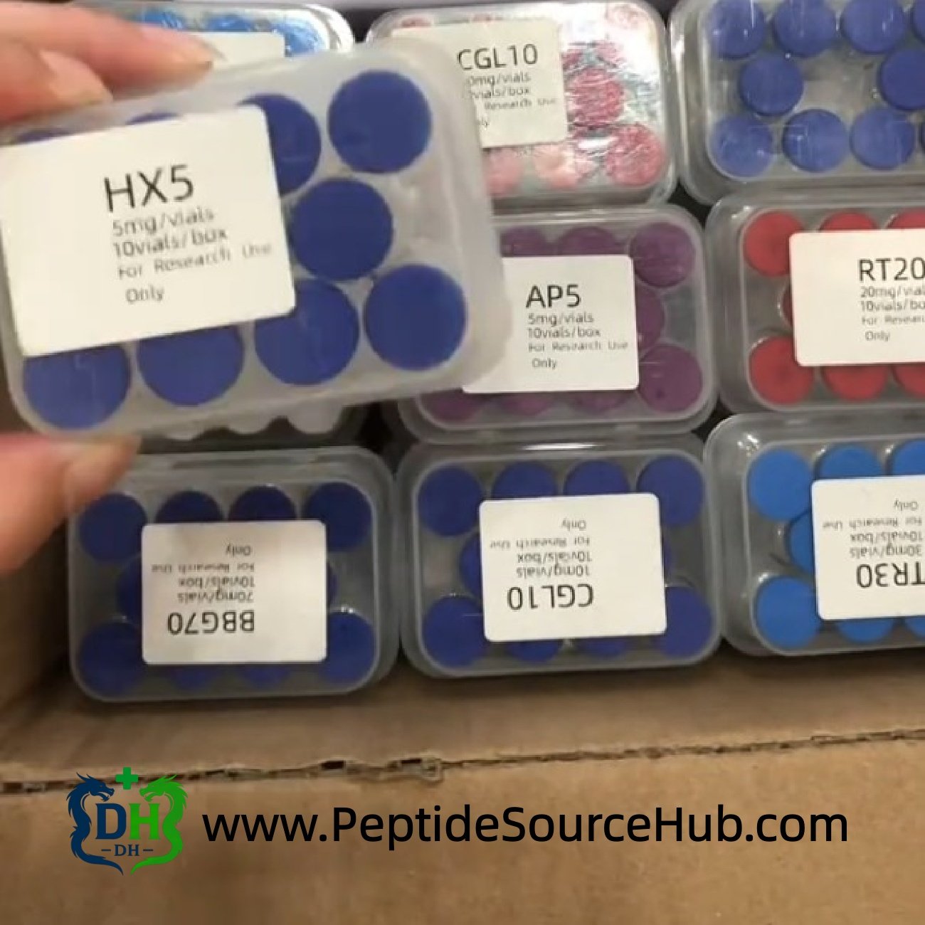 - Manufactured and filled in China for global peptide distributors and labs