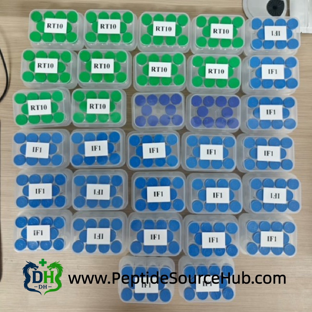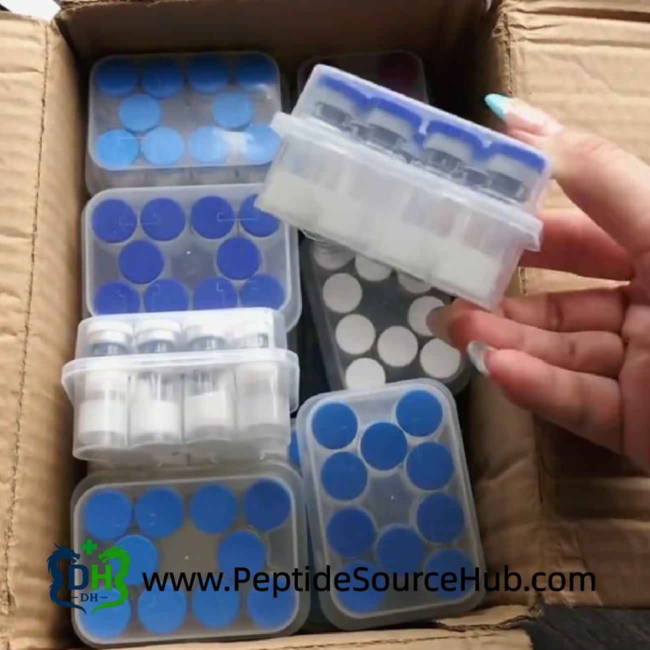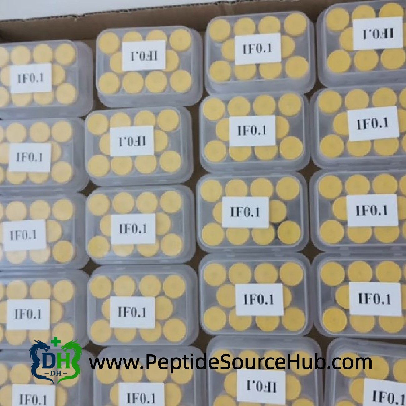 - Standard export packaging: 10-vial clear trays with protective lids, multiple trays per outer carton